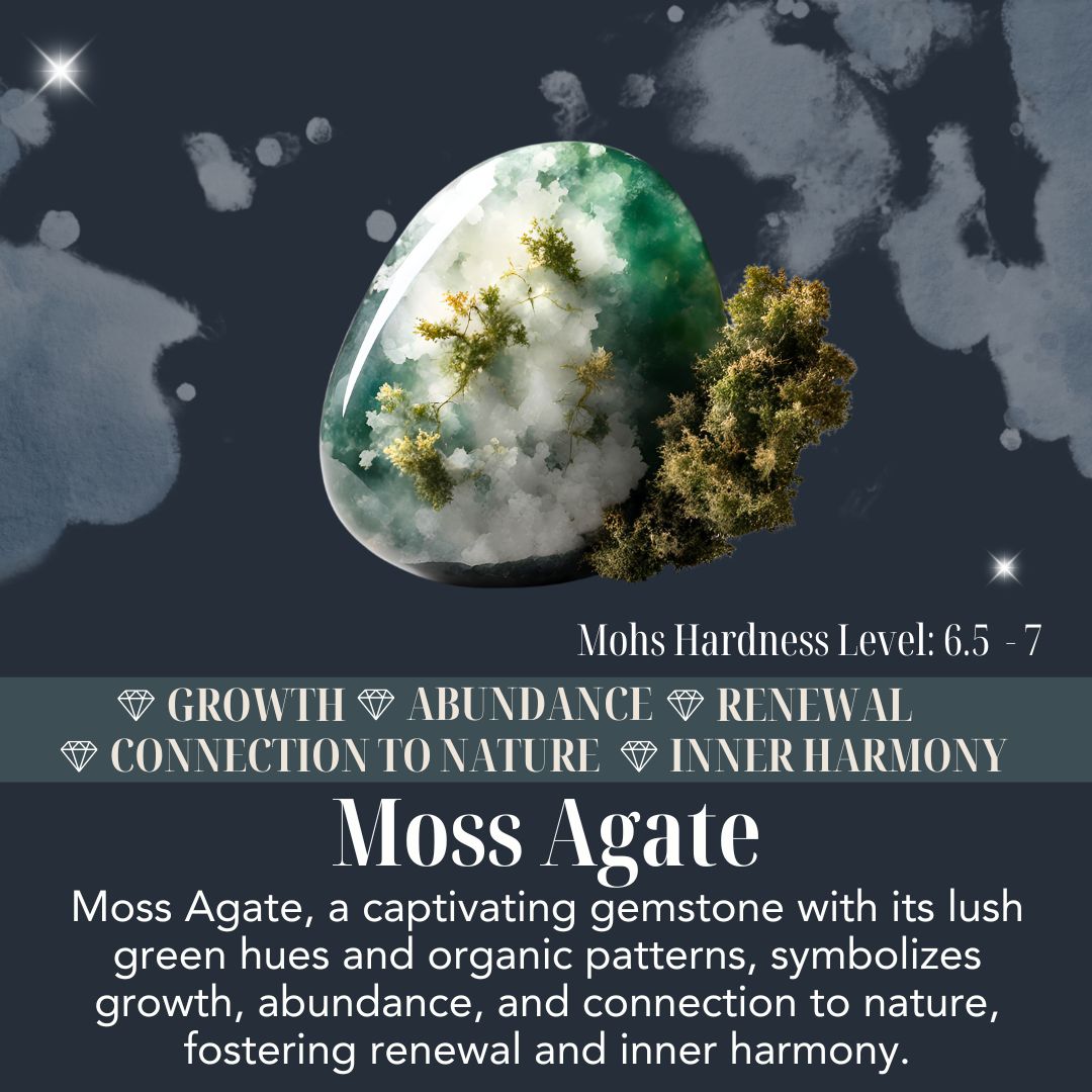 Made with 14k gold filled and Sterling silver wire. Genuine round moss agate stones, 4 mm.