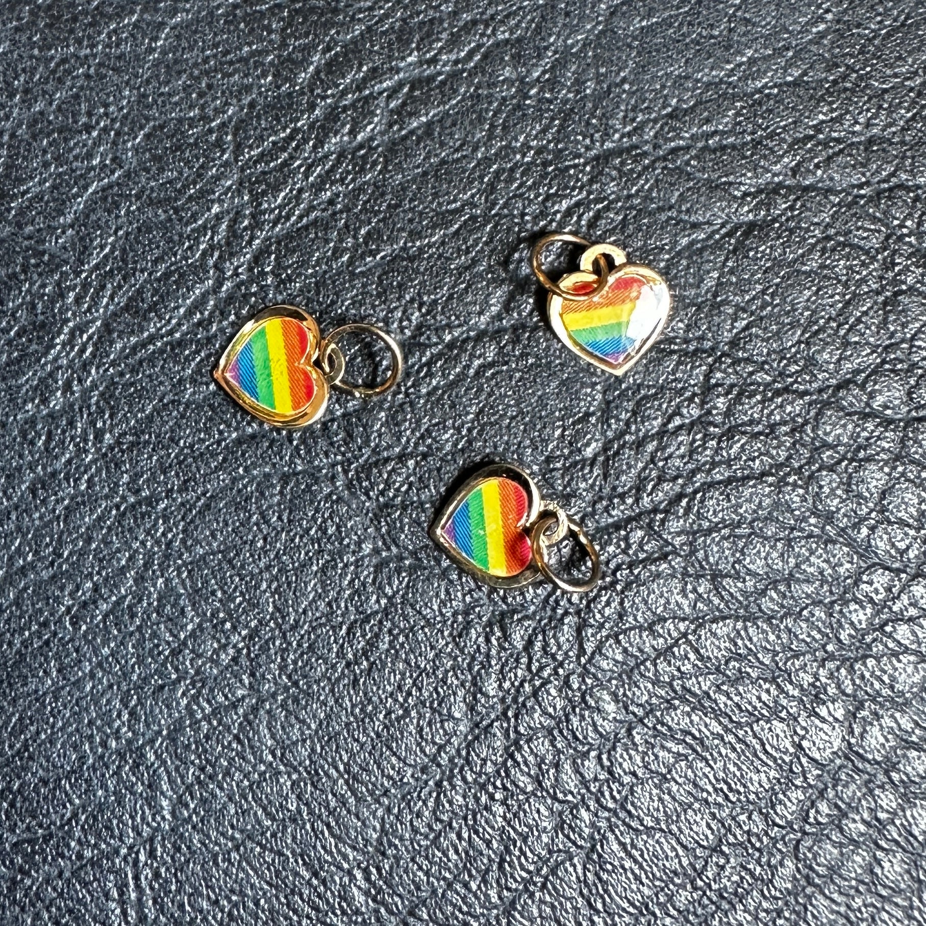 14k Yellow Gold Rainbow Heart Pride Charm with Enamel Inlay