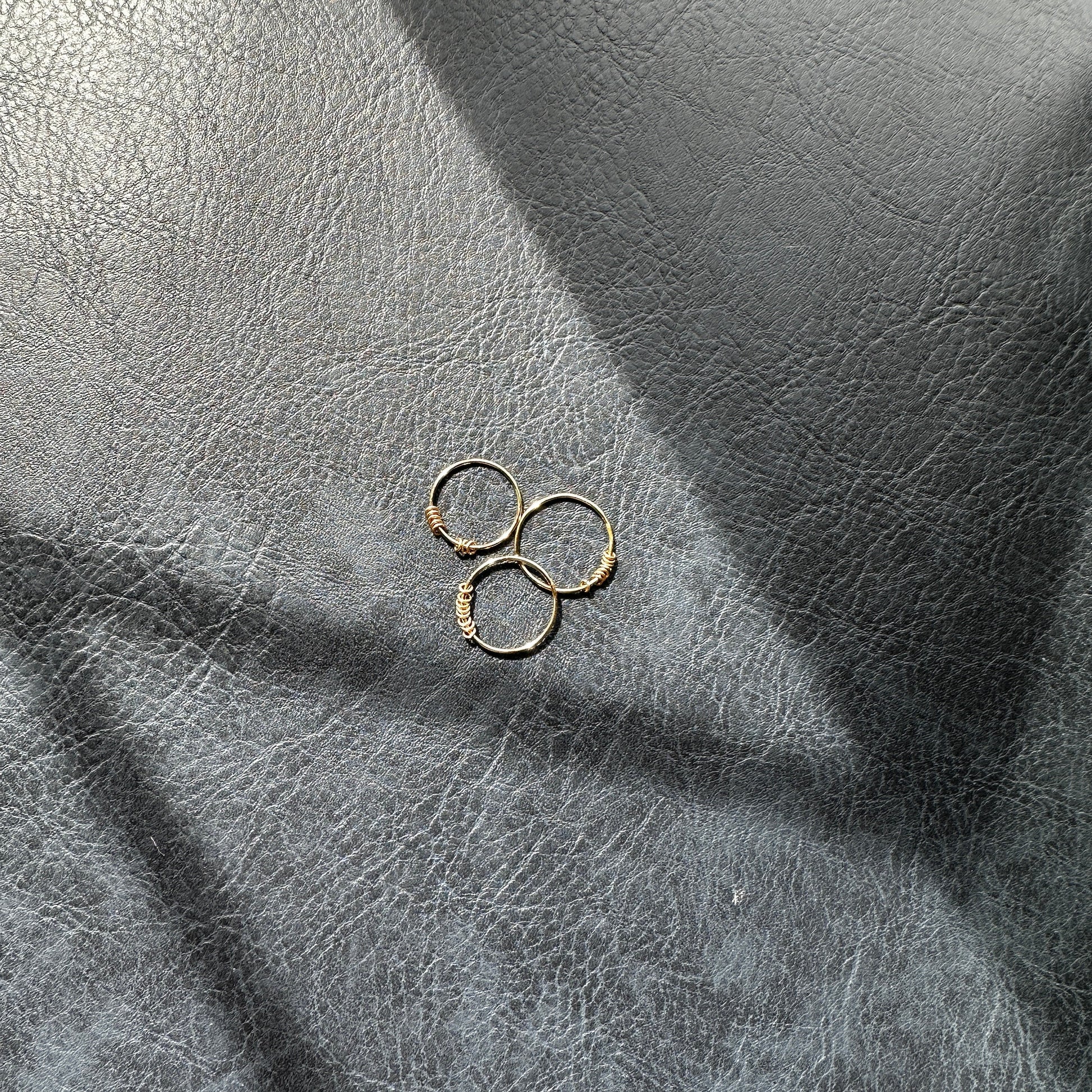 Our dainty handmade fidget rings contain small, loose rings that surround a smooth, round 1mm band and allow for 'fidgeting' by spinning and twisting the small rings.